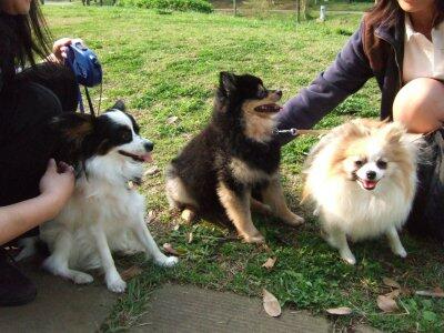 お散歩中に可愛いポメラニアンカップルに出会いました。