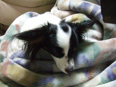 寒いので毛布にくっついてきます。ねむねむ。