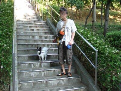 階段を登りきったところ、撮影でもたつく私に、ココは早く行こうよーという顔。