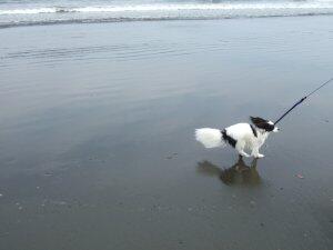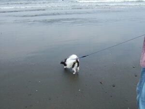 同じ海岸でミニチュアダックスの女の子発見。