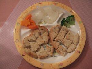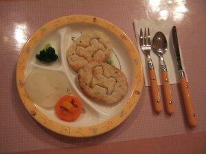 ココたんには、お待ちかねのワンバーグ(野菜付き)