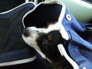 手荷物料金を払って、荷札をバッグに付けます。 |